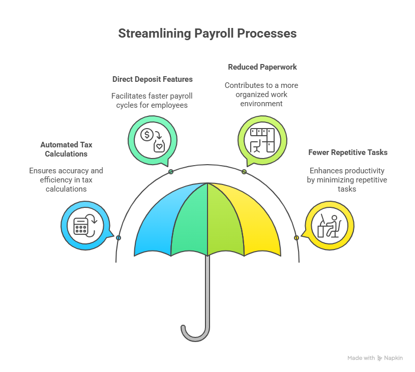 • Direct deposit features for faster payroll cycles.