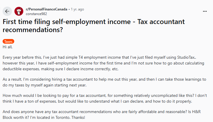 Curious about what real people are saying about the process? Let’s take a quick look at a Reddit conversation where self-employed Canadians share their experiences and tips on filing taxes online in Canada.